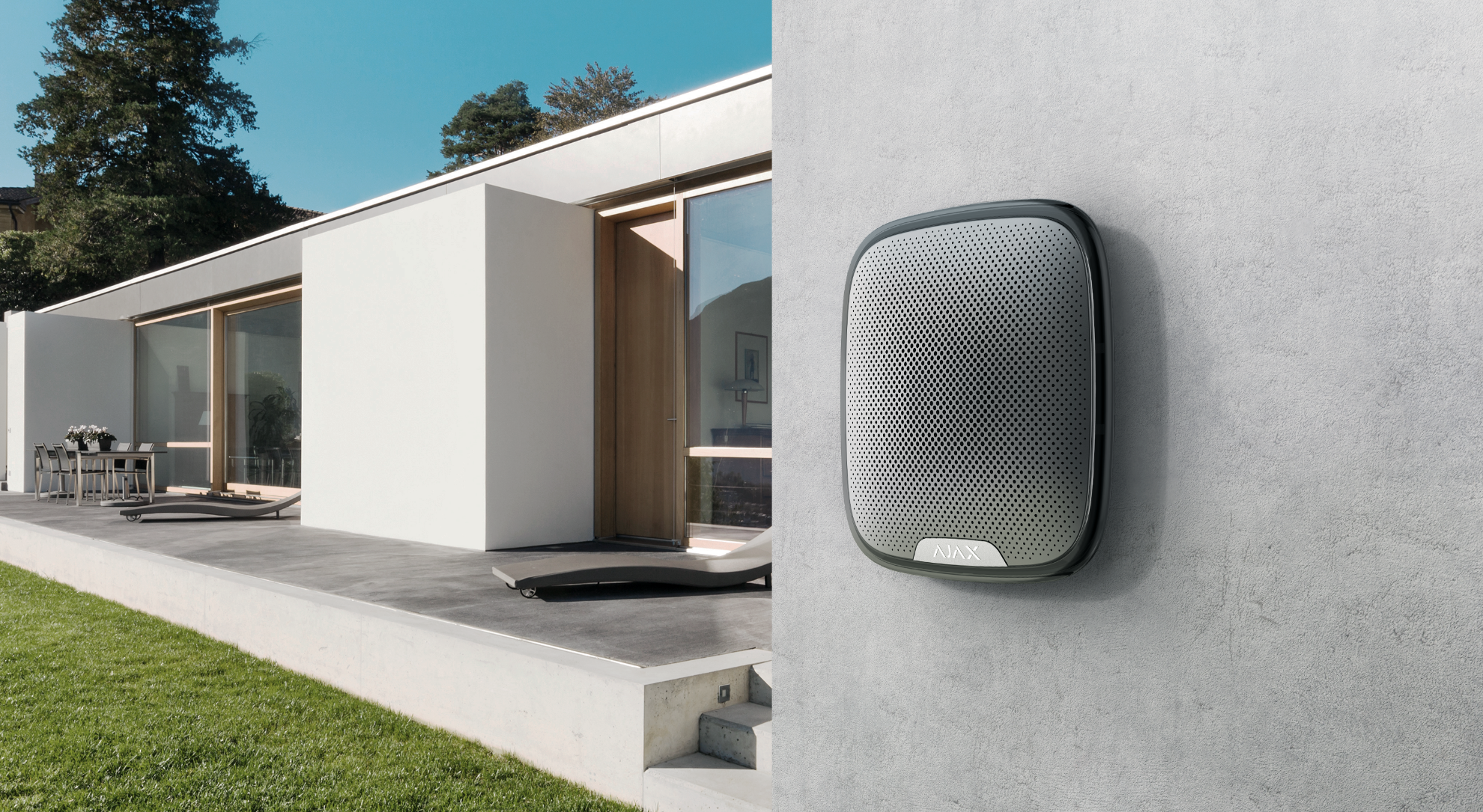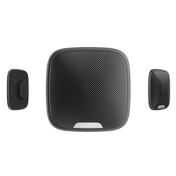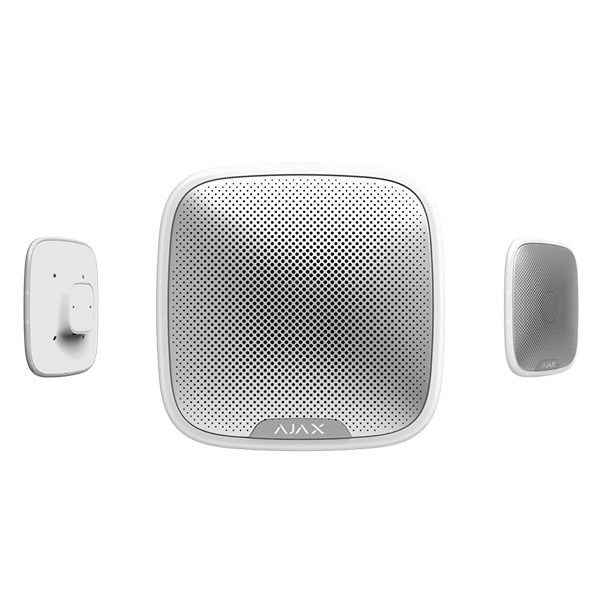 Trådløs udendørs sirene, der advarer om fare ved hjælp af lyd og lys. Enheden installeres udenfor, for at vække opmærksomhed. Enheden giver besked om detektoraktivering med en hørbar alarm og LED lys. Lydniveau og alarmlængde indstilles i mobilapplikationen.