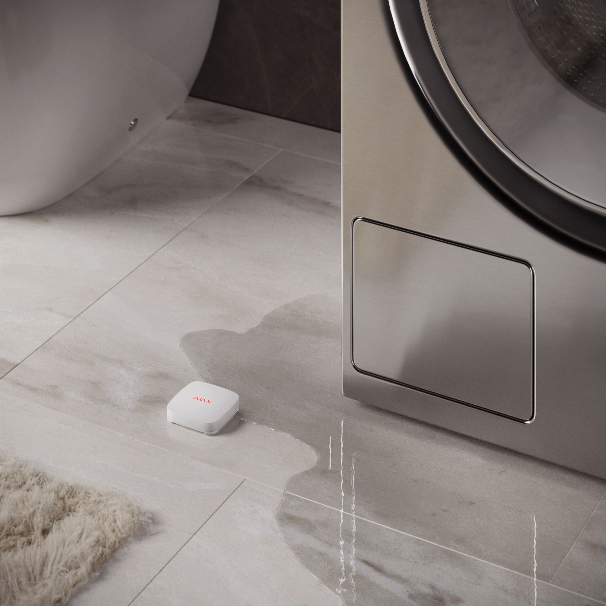 Hvis din vaskemaskine lækker, eller et rør går i stykker, reagerer detektoren straks og rapporterer en ulykke. Og hvis anlægget har et system til oversvømmelse , lukker Ajax automatisk vandforsyningen.