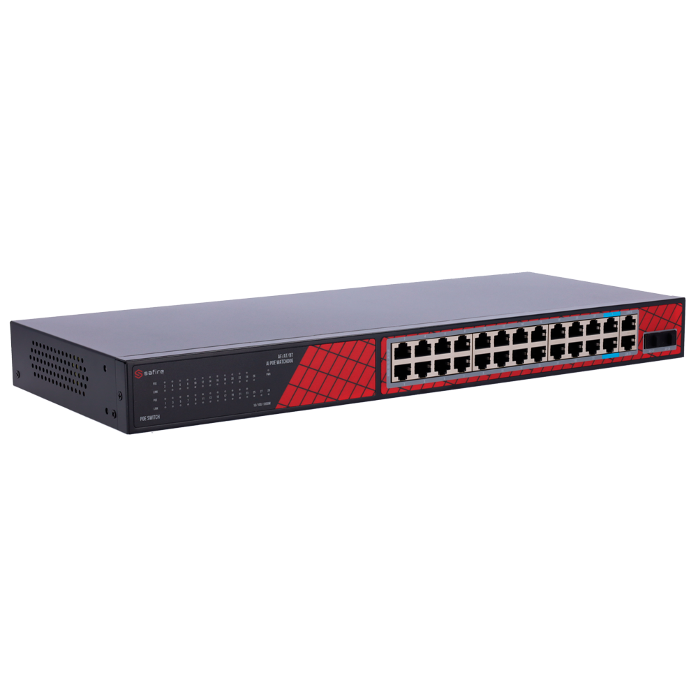 Safire PoE Switch 300W, 22x 30W Gigabit PoE & 2x 60W Gigabit PoE & 2x Gigabit Uplink & 2x SFP, Watc