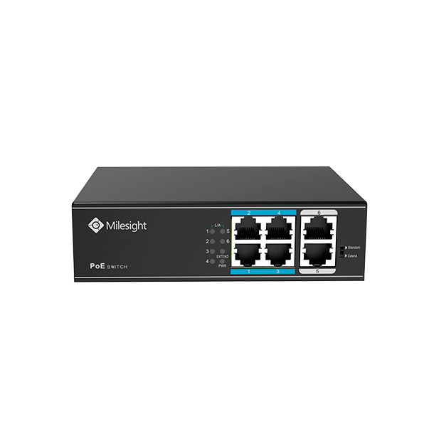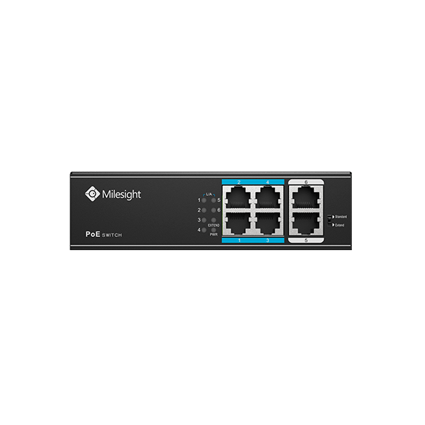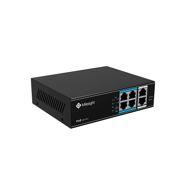 Milesight PoE Switch-serien har flere 10/100Mbps PoE-porte, der understøtter IEEE 802.3af / at-protokol og 2 uplink-porte, og giver et maksimalt strømbudget på 400 W til alle PoE-porte og 30 W for hver enkelt PoE-port, hvilket giver brugerne mulighed for at have flere forskellige konfigurerede kameravariationer.