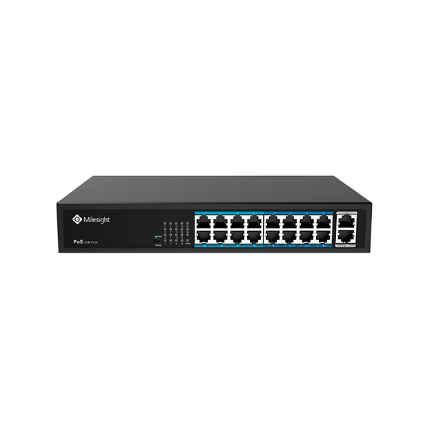 Milesight PoE switch, 16 x PoE, 2 x gigabit uplink, 200w