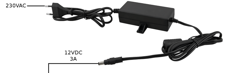 12V DC, 3000mA strømforsyning til overvågningskamera og andre enheder med DC 2,1mm stik. Elektronisk switchmode teknologi for mindre energiforbrug.Input: 100v ~ 230v AC 50/60Hz