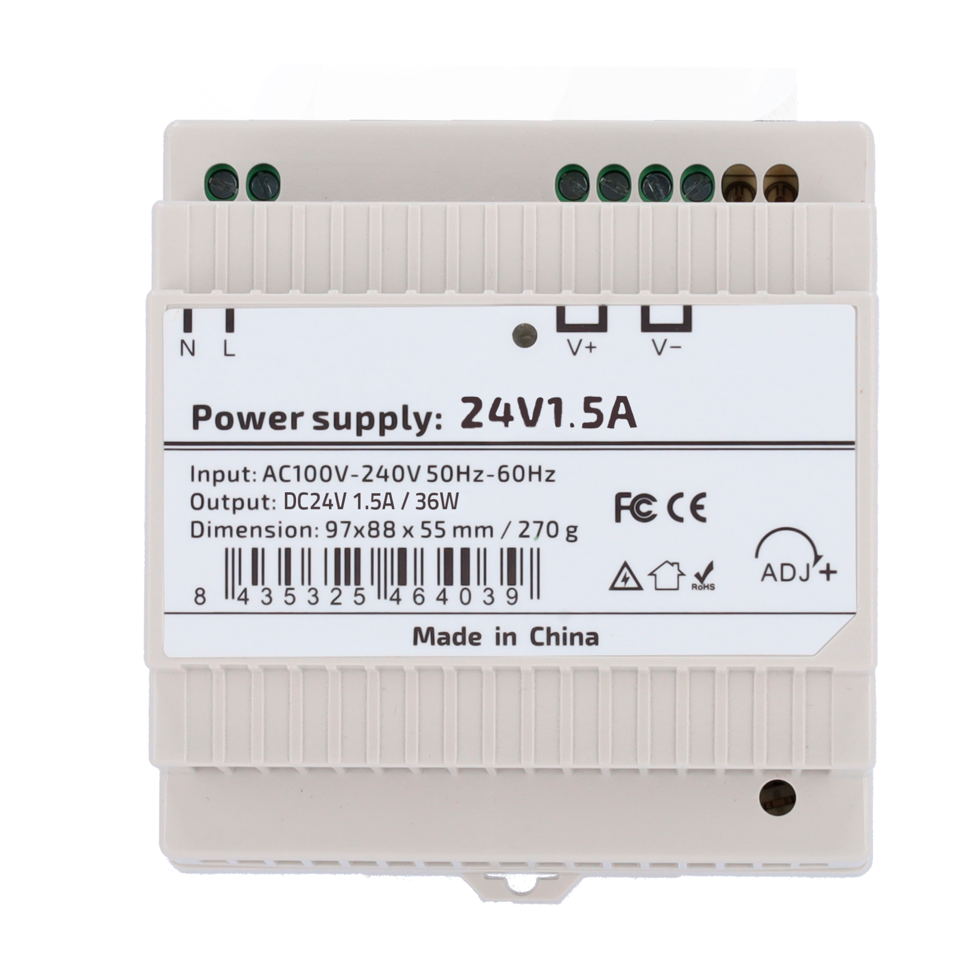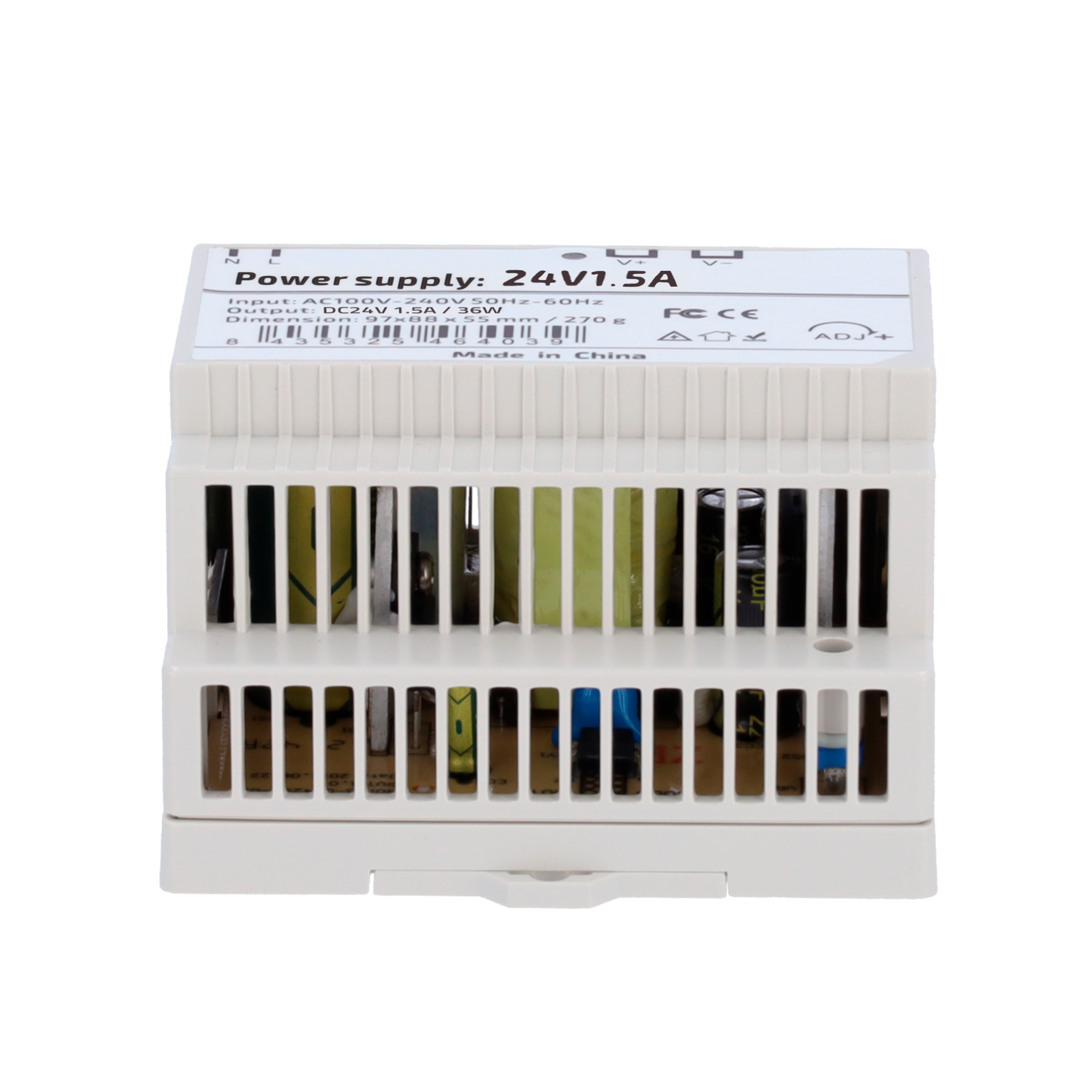 Strømforsyning til DIN skinne montage. 24V 1,5A,