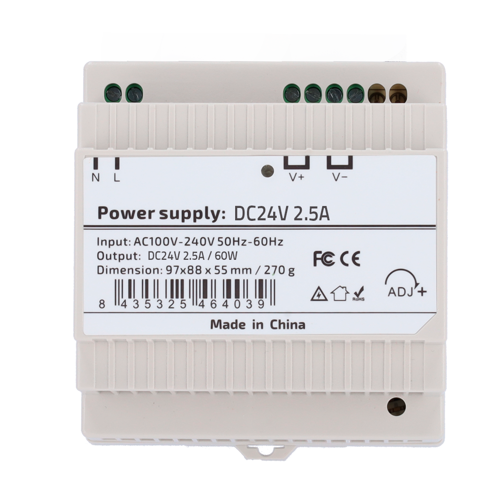 Strømforsyning til DIN skinne montage. 24V 2,5A,