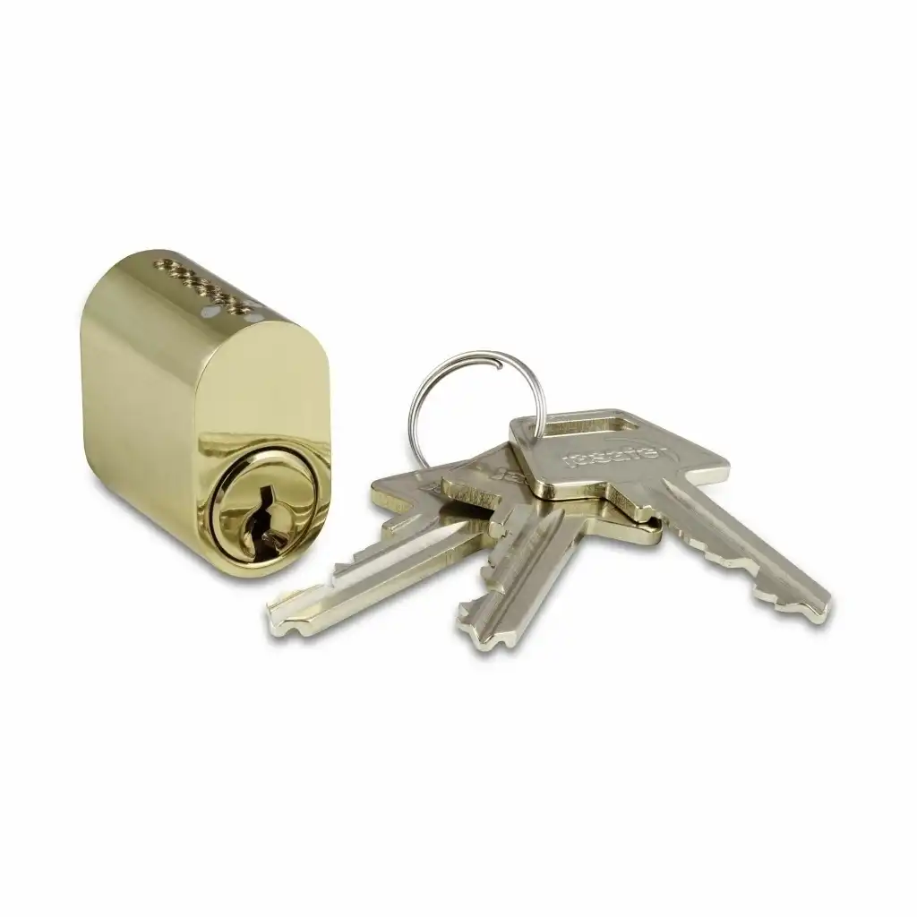 Oval cylinder i poleret messing m/ 3 nøgler, 6-stift VT